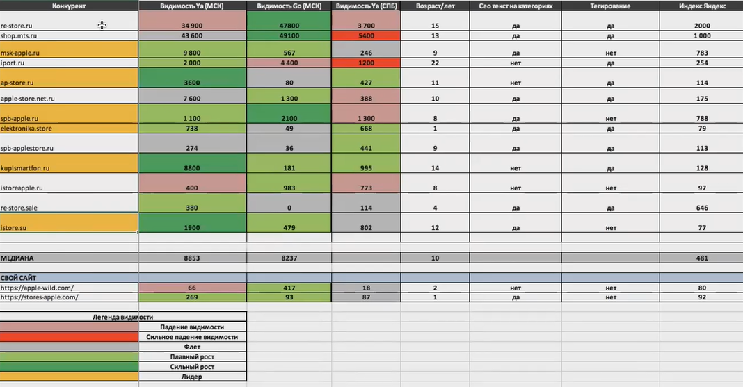 SEO-специалист анализирует соперников интернет-магазина, которые имеют высшую видимость в теме. Из всего перечня он отбирает тех соперников, которые в заключительнее время растут по трафику.