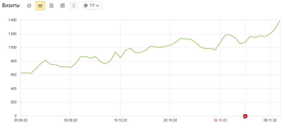 20 сентября мы запустили новейший сайт заместо ветхого и узрели активный рост поискового трафика. Теснее через 50 дней трафик вырос в 2,5 раза: с 600 до 1400 гостей в день. Это необыкновенно награда работы по расширению структуры и SEO-подготовки.