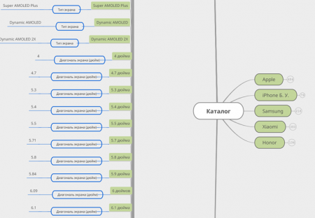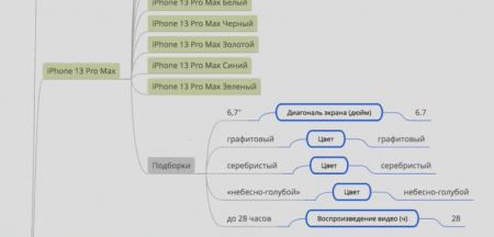 В разделе Apple мы добавили все модели телефонов (SE, 13 Pro Max, 13 и т.д.) . По каждой модели мы сделали выборку вариантов с таковыми аспектами, как размер памяти и цвет. К примеру: iPhone 13 Pro Max Золотой / iPhone 13 Pro Max Голубий; iPhone XS Max 64 ГБ / iPhone XS Max 256 ГБ.