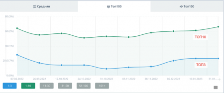 Результаты выдачи в Яндекс в ТОП-3 и ТОП-10: