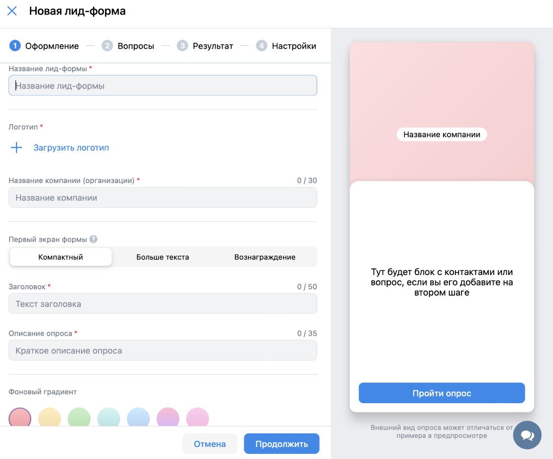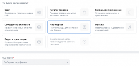 На первом шаге команда Риалвеб создала лид-форму: сделать это можнож прямо в кабинете VK Рекламы.