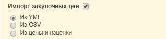 Тут можнож выбрать 3 варианта передачи данных. Из YML – тогда надобно добавить элемент purchase_price для каждого продукта в yml-файле. Из CSV - сформируйте файл CSV и загрузите на сервер, в системе укажите URL, откуда будут скачиваться данные.