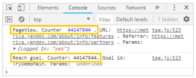 Вариант потруднее и понадежнее (рекомендуется Яндексом) . К адресу целевой странички в браузере добавьте «?_ym_debug=1». Нажмите Ctrl+Shift+J – опосля этого раскроется консоль. Выполните целевое событие. Ежели все работает корректно, в консоли покажется известие о том, что данные переданы счетчику, которое смотрится приблизительно так: