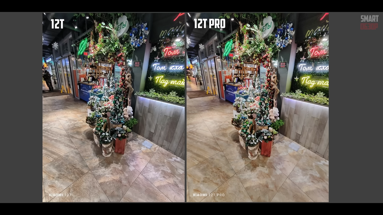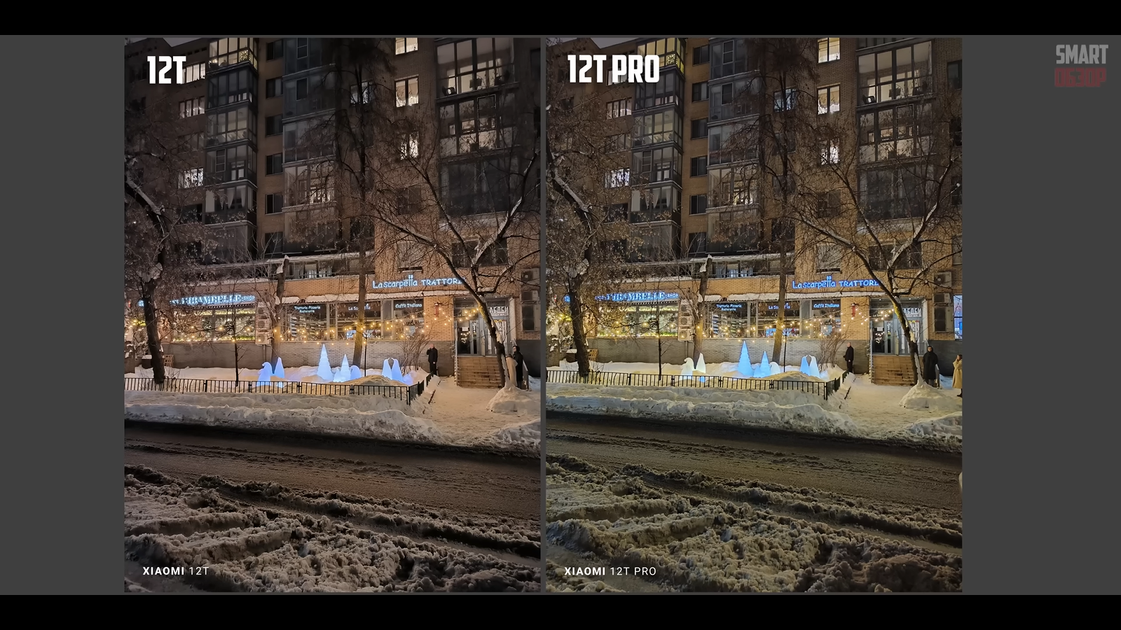 SMART ОБЗОР SMART ОБЗОР SMART ОБЗОРОсновной модуль у 12T Pro имеет 200 МП, 12T - 108 МП. Остальные объективы одинаковые. При хорошем освещении разница в снимках есть, но лишь иногда. При этом снимки с 12T Pro в режиме 200 МП весят по 50-60 МБ, поэтому вы вряд ли постоянно будете так фотографировать. В авторежиме при нормальном освещении разницы в плане деталей никакой, вечером и ночью Pro снимает временами чуть лучше. В целом результат получается очень схожий, поэтому ради камеры брать 12T Pro вместо 12T смысла нет.