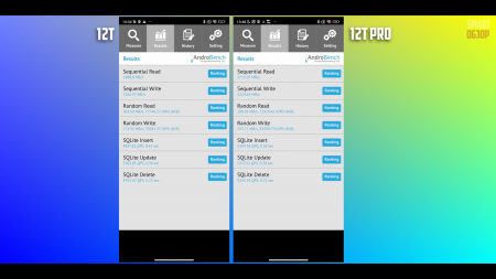 Экраны практически идентичны. Максимальная яркость при этом у 12T Pro - 1700 нит, у 12T - 1500 нит. В целом оба экрана показывают себя хорошо.