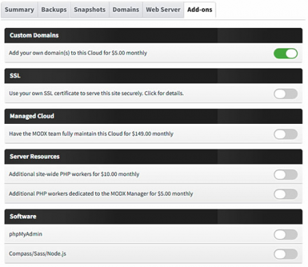 Помимо этого, в MODX Cloud были сделаны следующие улучшения: