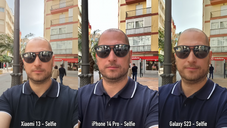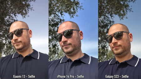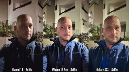 Если говорить о записи видео на фронтальную камеру, то Xiaomi 13 умеет снимать только в 1080p 30 к/с, тогда как остальные смартфоны - в 4К 30 к/с. Работают на всех трёх устройствах фронталки хорошо.