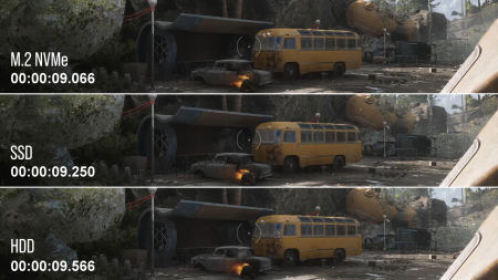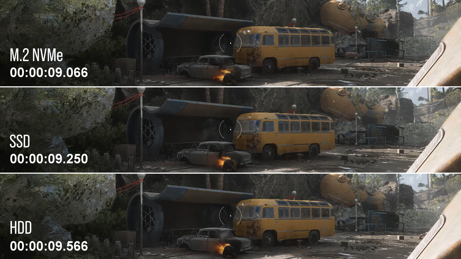 В Atomic Heart на установку шейдеров у M.2 NVMe ушла 1 минута 58 секунд, у SSD - 2 минуты 5 секунд, у HDD - 2 минуты 11 секунд. Что касается времени загрузки игры, то оно составляло 9 секунд у SSD и M.2 NVMe и 9,5 секунд - у HDD. Средний FPS составлял с M.2 NVMe - 125 к/с, с SSD - 124 к/с и с HDD - 123 к/с.