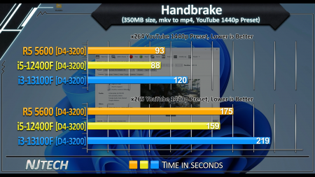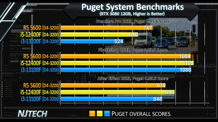Эксперты YouTube-канала NJ Tech протестировали в рабочих программах и играх три процессора. Среди них - Ryzen 5 5600, Intel Core i5-12400F и i3-13100F.