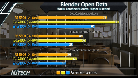 В рабочих программах лидировал в однопоточном режиме процессор i3-13100F, во многопоточном - i5-12400F. Также в приложениях вроде Corona 1.3, V-Ray и т.п. больше остальных баллов было у i5-12400F.
