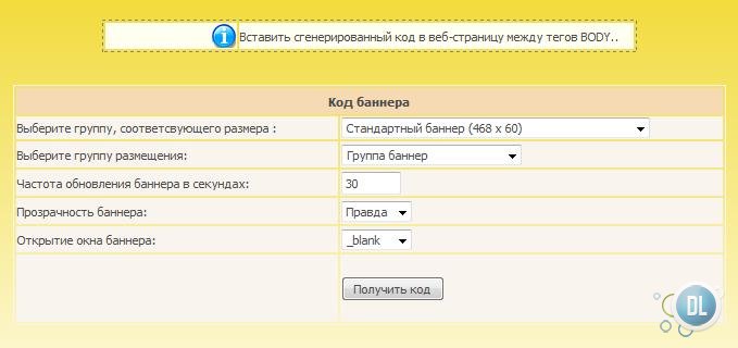 В одной группе, под одним размером, работают сразу все три формата. Время показов между баннерами устанавливается при получении кода на группу. Также хотелось бы отметить две важные вещи, которые придают удобство работы скрипта «Менеджер баннеров», это отдельная установка времени показа на каждую рекламу и подробная статистика, где к каждому рекламному материалу генерируется отдельная ссылка.