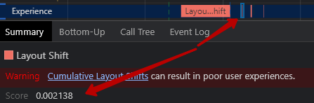 Нас интересует раздел Experience. В нем содержится 4 блока, которые разговаривают нам, что сдвиг макета происходил четыре раза. При исследовании 3-х заключительных блоков, сдвиг макета был соответственно на: 0,021, 0,01 и 0,00005 – это чрезвычайно маленький показатель, и на сходственные малые сдвиги можнож не обращать внимание (подсказываю, наша задачка чтоб сдвиг макета был ниже 0,25 и желанно ниже 0,1) .