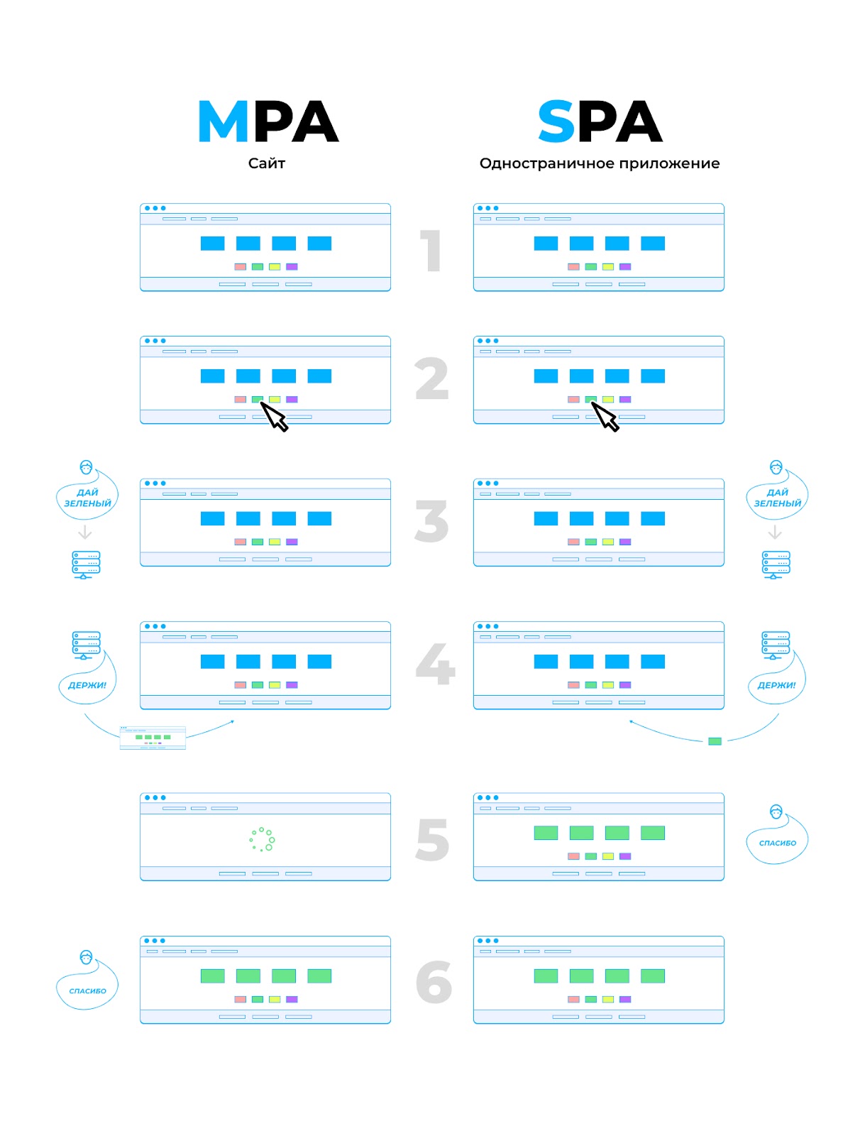 Ежели бы вы просили MPA и SPA раскрасить рисунки в различные цвета, то это смотрелось бы приблизительно так: