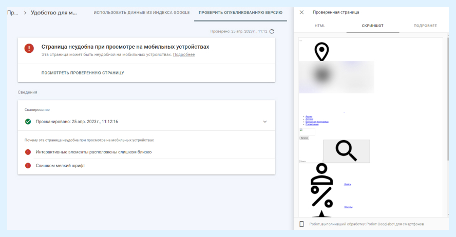 Сайт был вполне написан на скриптах. Тогда сперва мы проверили, как бот ПС видит странички. Как и подразумевали, на скрине оказалось лишь белоснежное полотно.