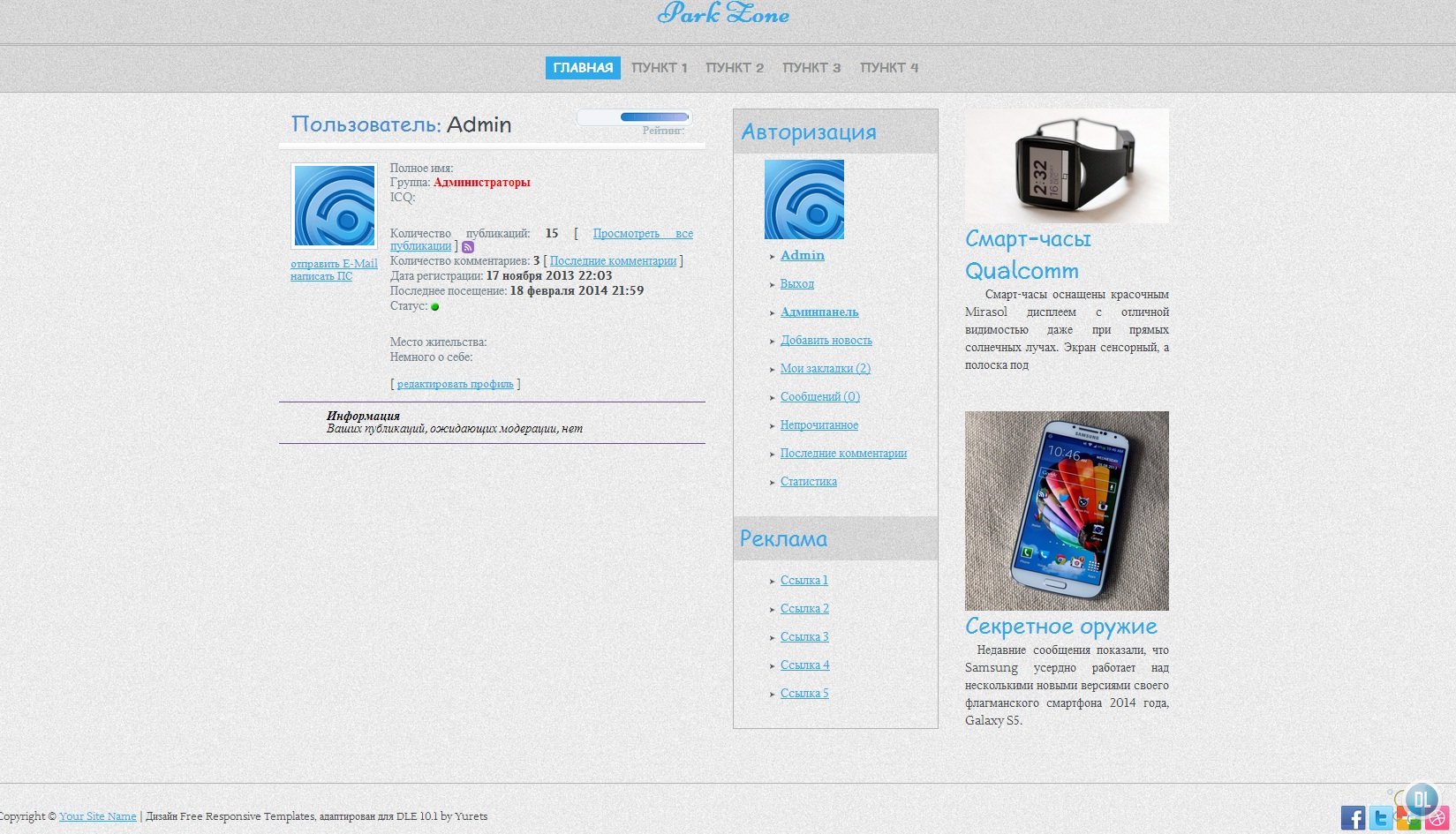 HTML5 шаблон ParkZone для DLE 10.1 (multiscreen)