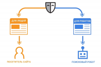 Для этого на сайт быть может установлен скрипт, который по определенным чертам, таковым как: тип устройства, IP-адрес, язык, часовой пояс, utm-метки, user agent и т.д. будет отделять роботов от жителей нашей планеты и демонстрировать им абсолютно иной текст.