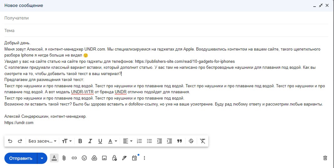 Доскональное и развернутое письмо с большей вероятностью вызовет отклик со стороны собственника сайта