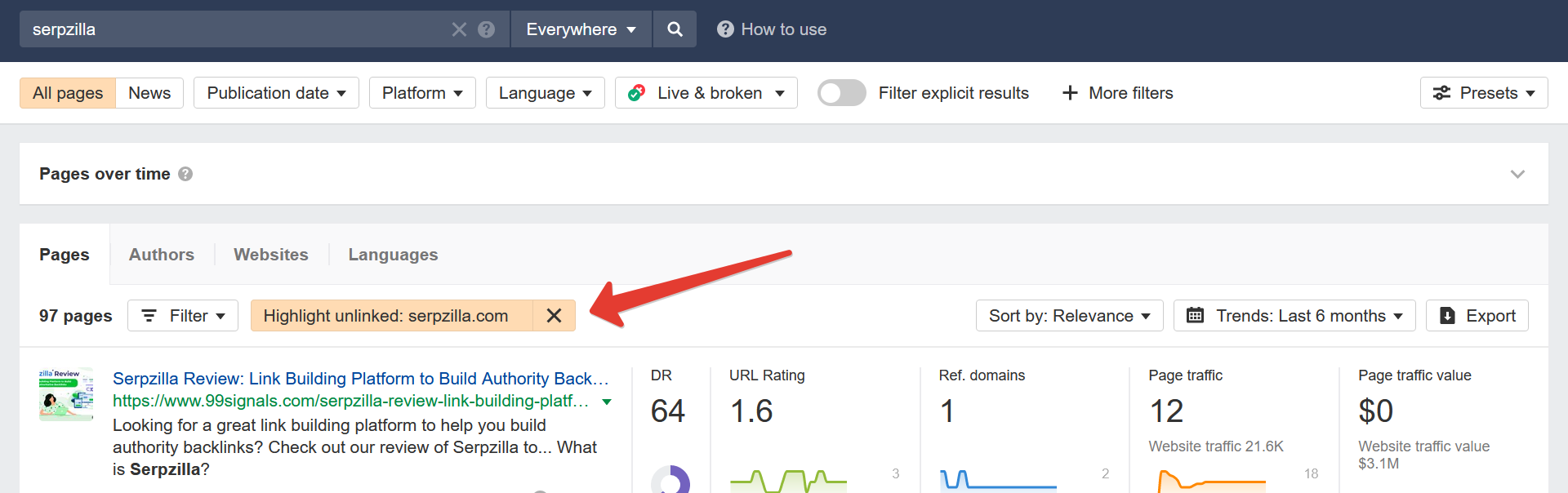 Отыскивать упоминания вручную непросто. Для поиска можнож применять один из приборов сервиса Ahrefs. С поддержкою специальной функции можнож подсветить странички, на которых упоминается ваш ресурс либо бренд, но пока нет ссылок.