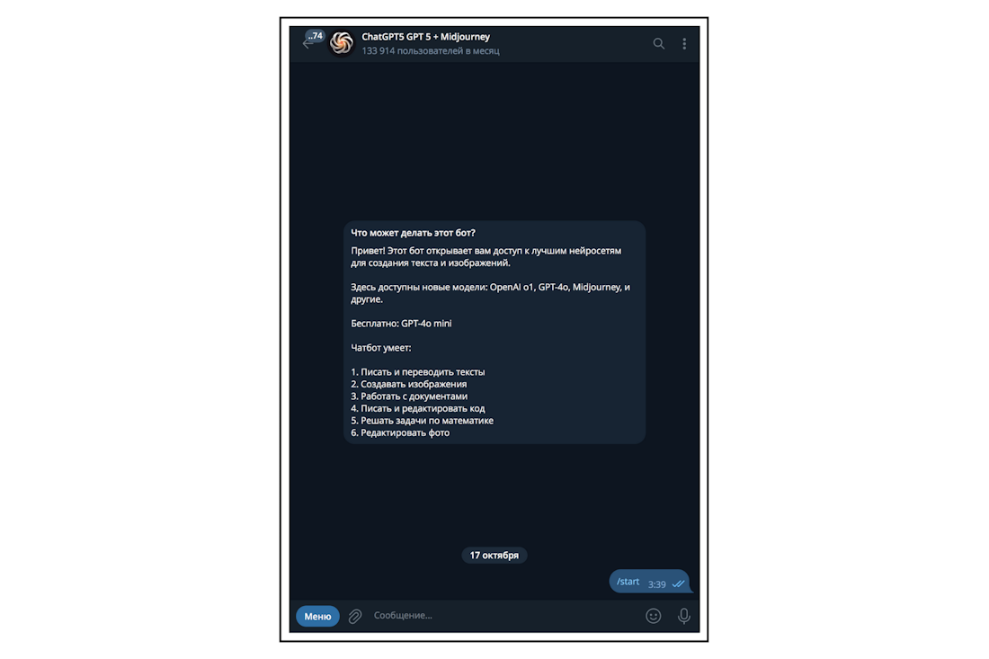 Самые популярные – боты-агрегаторы, внутри которых собраны десятки разных моделей. Это удобно: не нужно переключаться между несколькими чатами – все инструменты под рукой.