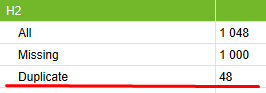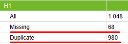 Чтоб любая страничка имела один неповторимый заголовок и ранжировалась лучше, мы поправили дубли и заполнили недостающие H1 и H2.