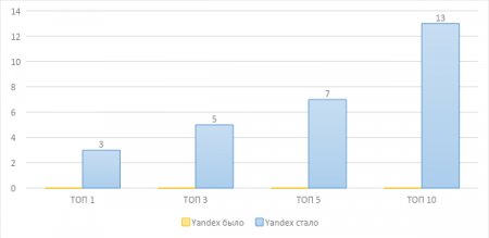 2. Спустя 8 месяцев SEO-работ количество вывода ключевых фраз в топ-10 подросло: Yandex – до 20%, Google – до 60%. Это сочиняет 115 запросов от всего семантического ядра.