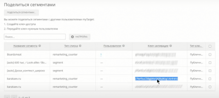Потому дальше возвращаемся в меню «Поделиться сегментами» и из таблицы забираем ключ.