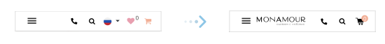 Потому что хедер перегружен, навигация по сайту была затруднена для юзера. Мы оставили самые основные элементы, которые необходимы для интернет-магазина: клавиша звонка, поиск, корзина. Логотип – обыкновенный атрибут, который размещается в шапке сайта и предназначен для повышения узнаваемости. Без него уяснить сайт намного труднее, потому мы расположили его справа от бургер-меню. Внедрение различных цветов значка корзины и избранного рассеивает внимание юзеров, потому мы привели их к единичному стилю. Акцентным цветом выделили количество продуктов, добавленных в эти блоки.