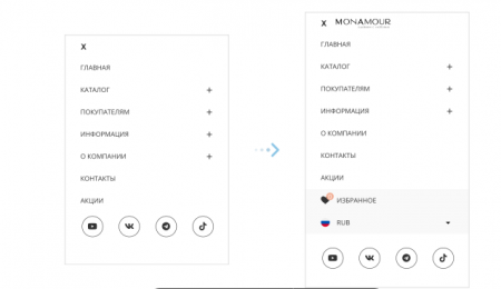 Также из хедера исключили клавиши избранного и переключения валюты, перенесли их в бургер за главными пт меню.