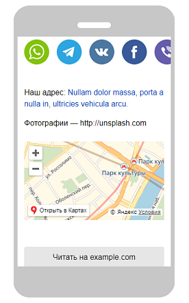 10. Страничку контактов или услуг можнож дополнить Яндекс.Картами для Турбо-страниц, при всем этом масштаб карты будет автоматом выстроен в зависимости от размера экрана устройства.